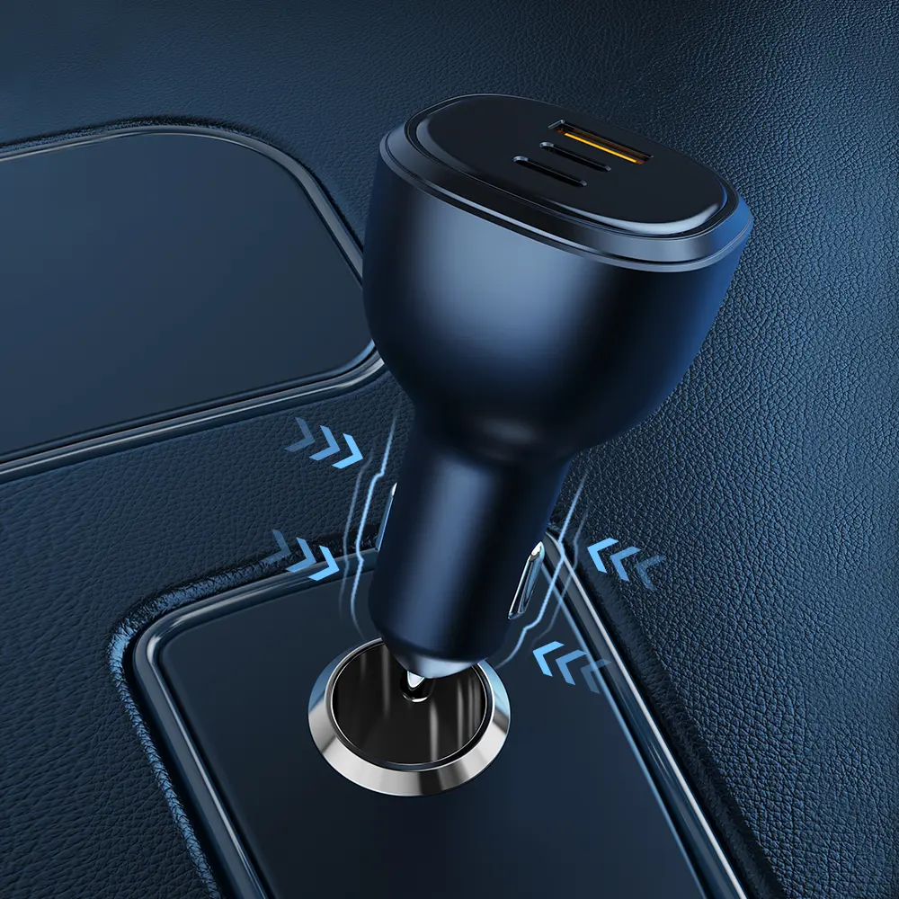 Popular Product 2023 USB C Car Charger Adapter 100W 2-Port PD 65W QC3.0 18W Super Fast Charging Type C Smartphone Mobile Chargeur Cigarette Lighter