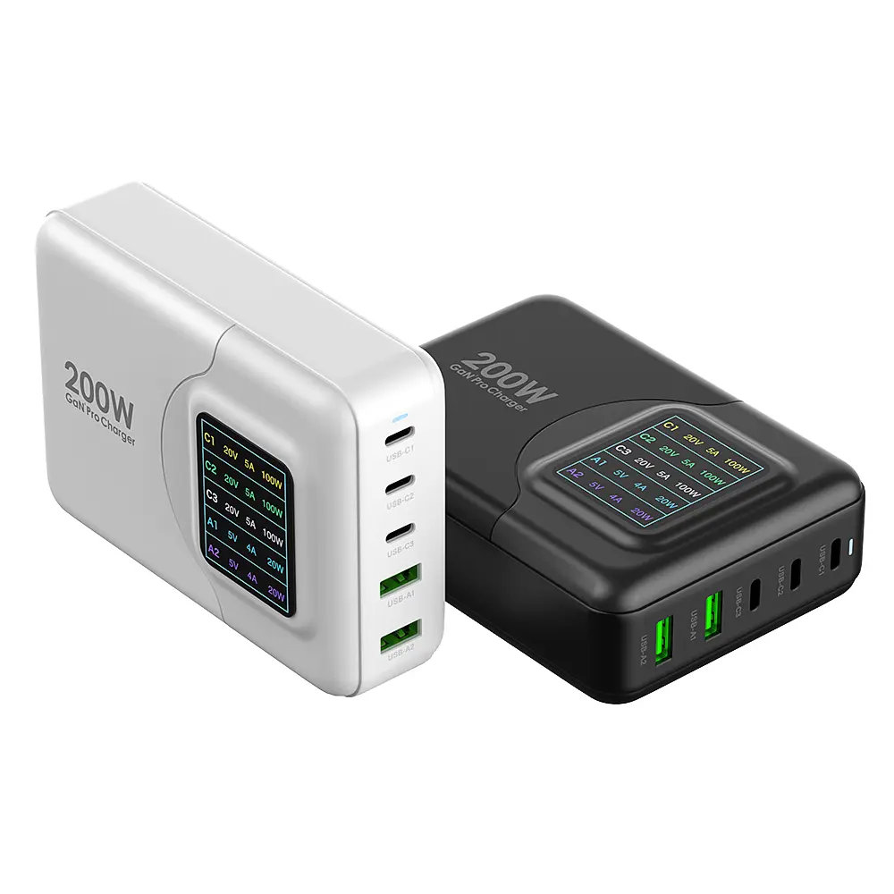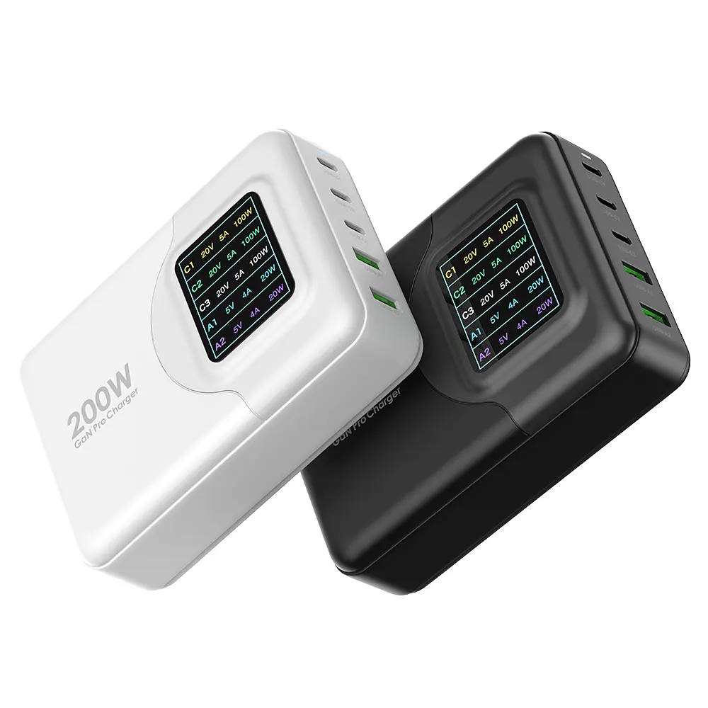 Tech Multi-Port 200W Laptop Mobile Phone USB Desktop Fast Charger With Voltage And Current Digital Display