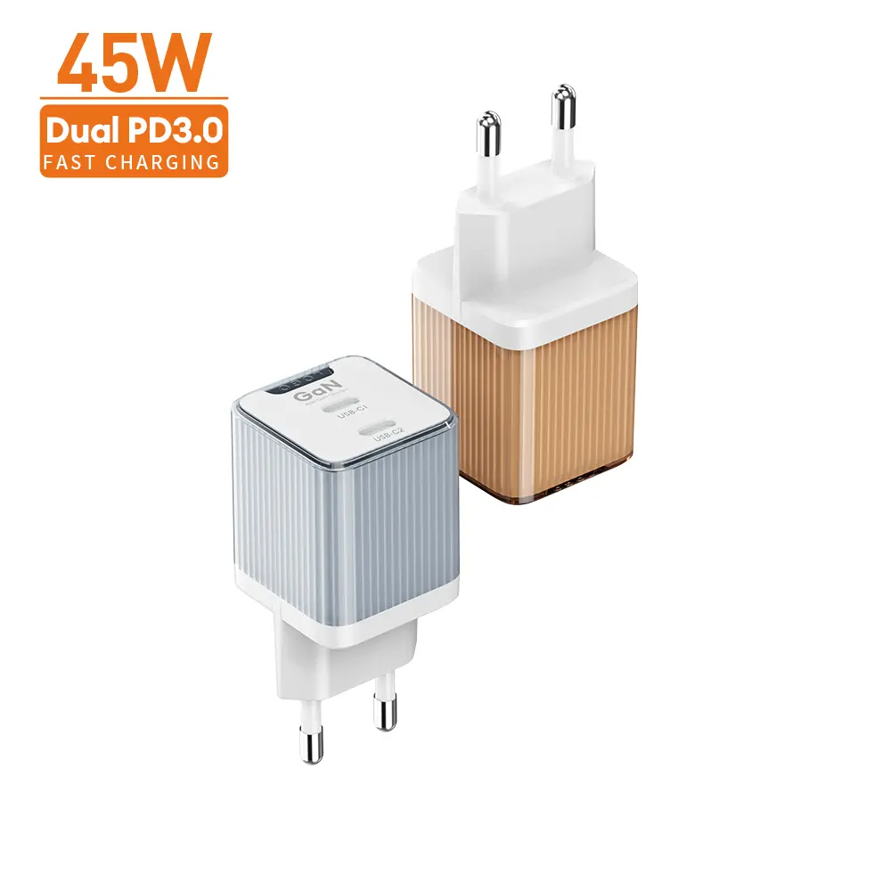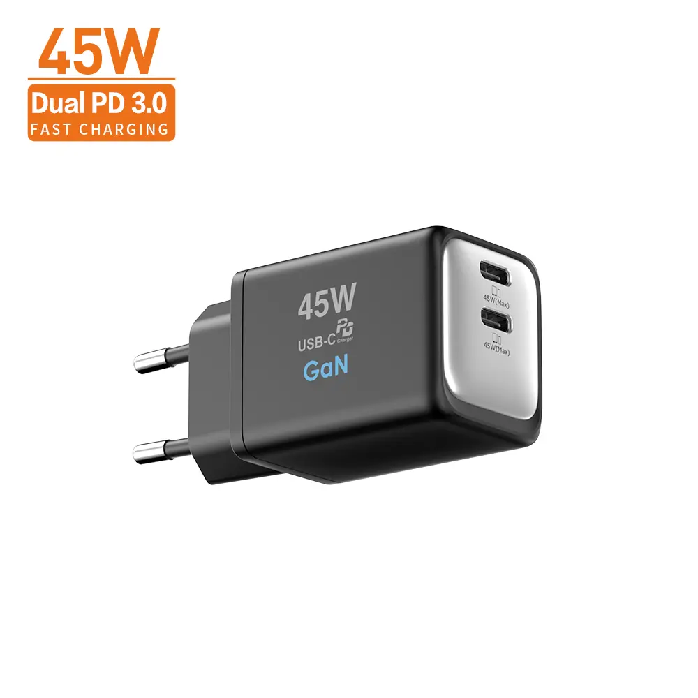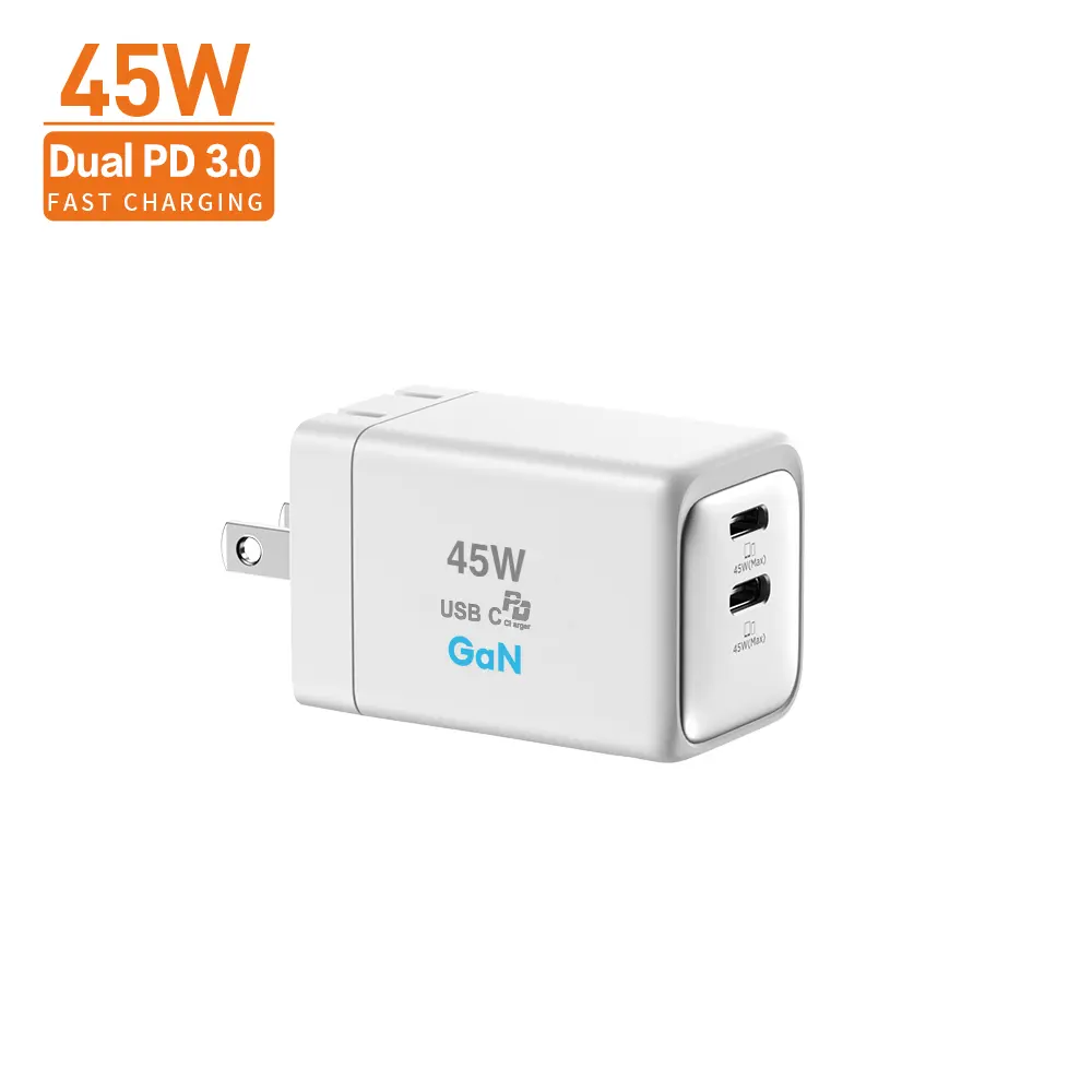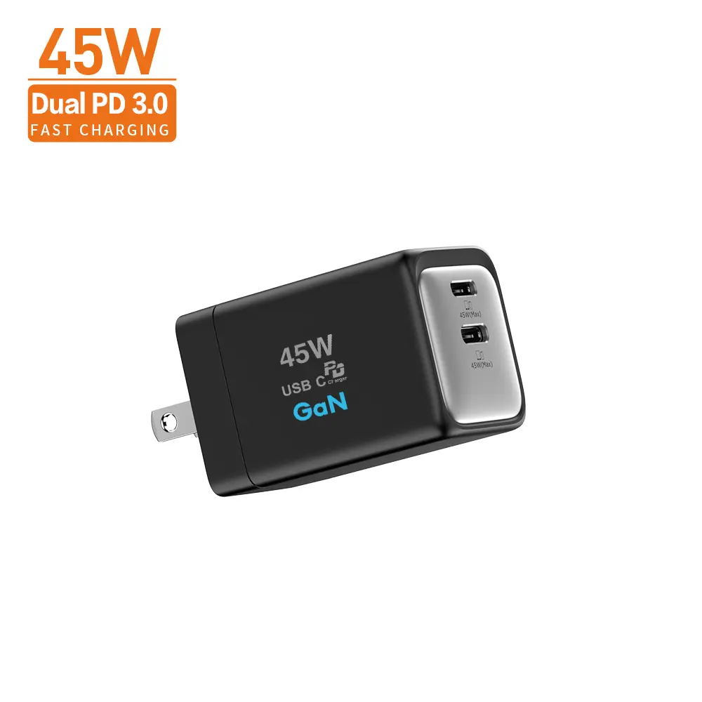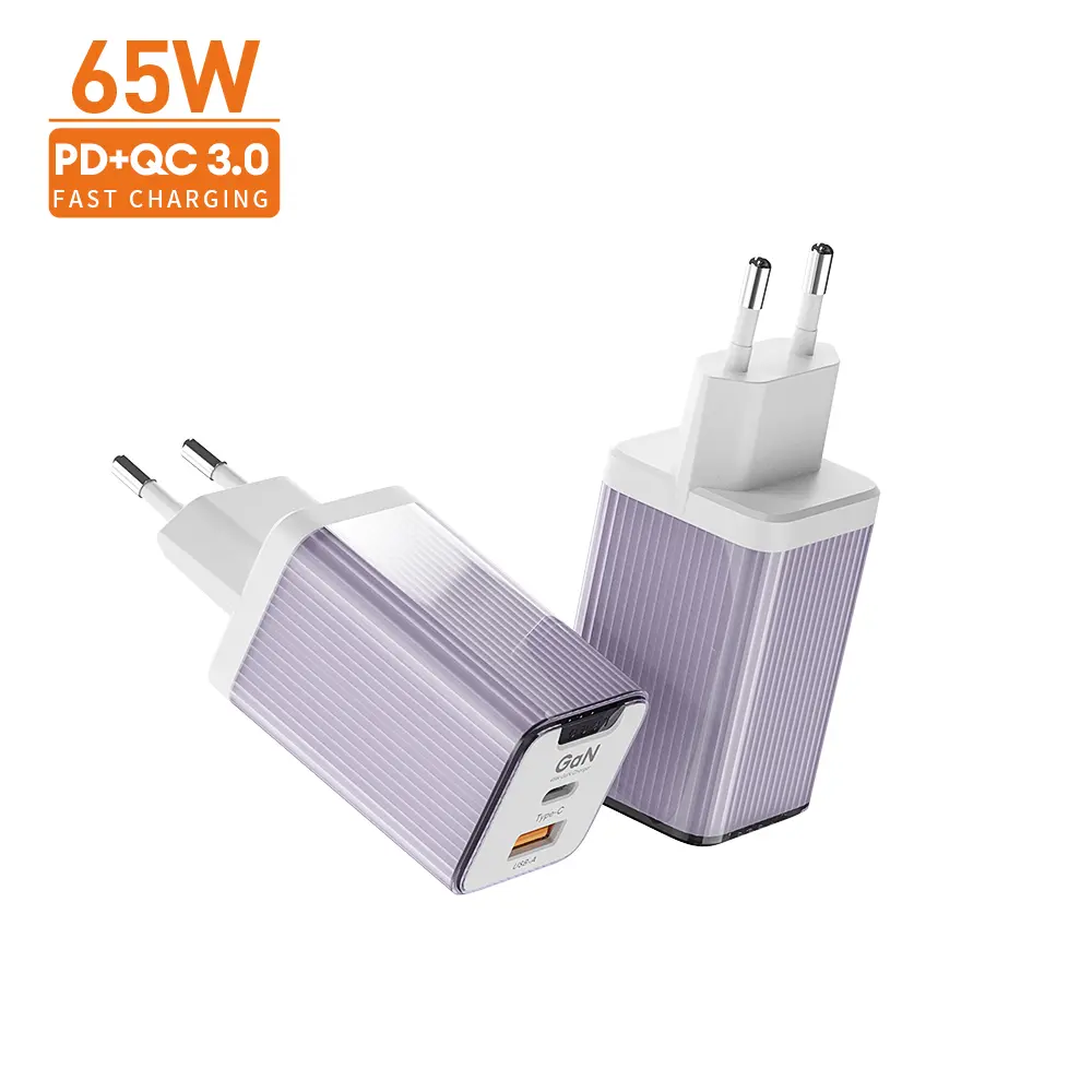 Hot Trending 65W GaN Quick Charge 3.0 Fast Dual Ports Travel Wall Power Adapter Charger